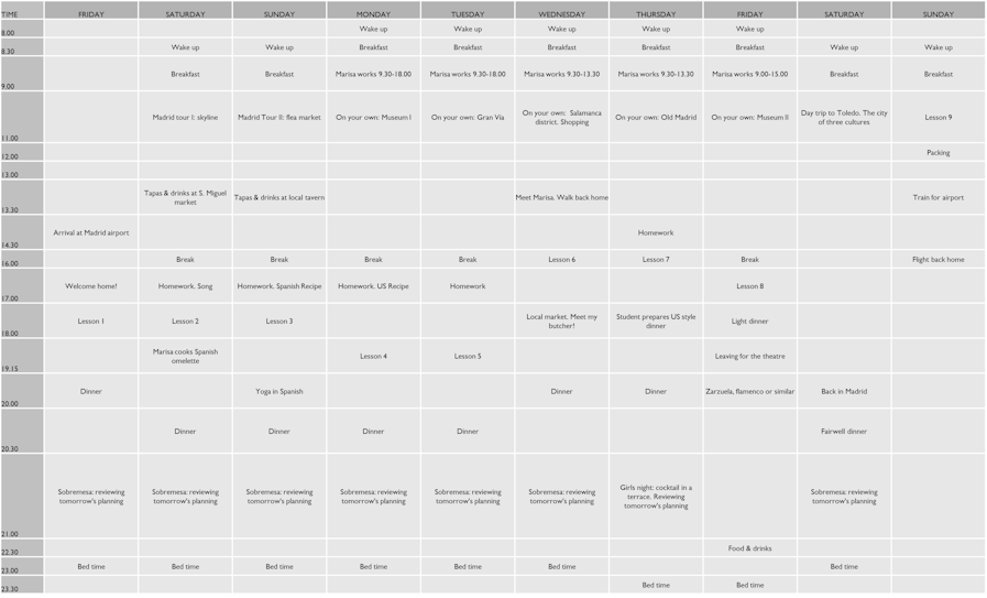 Each morning we can have a formal language class, combined with yoga stretching, a cooking session, a shopping outing, or a simple stroll. I offer a totally customized experience.